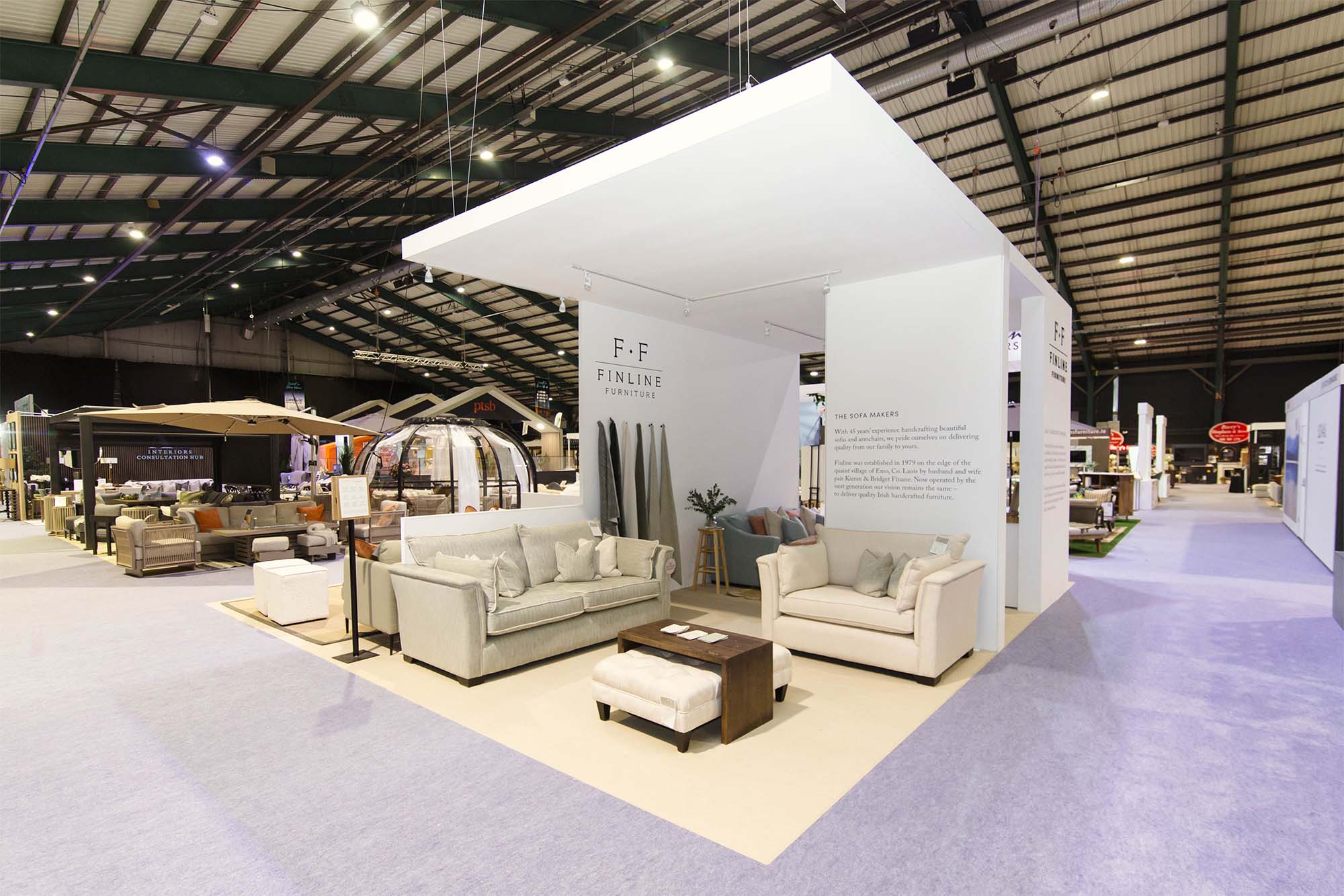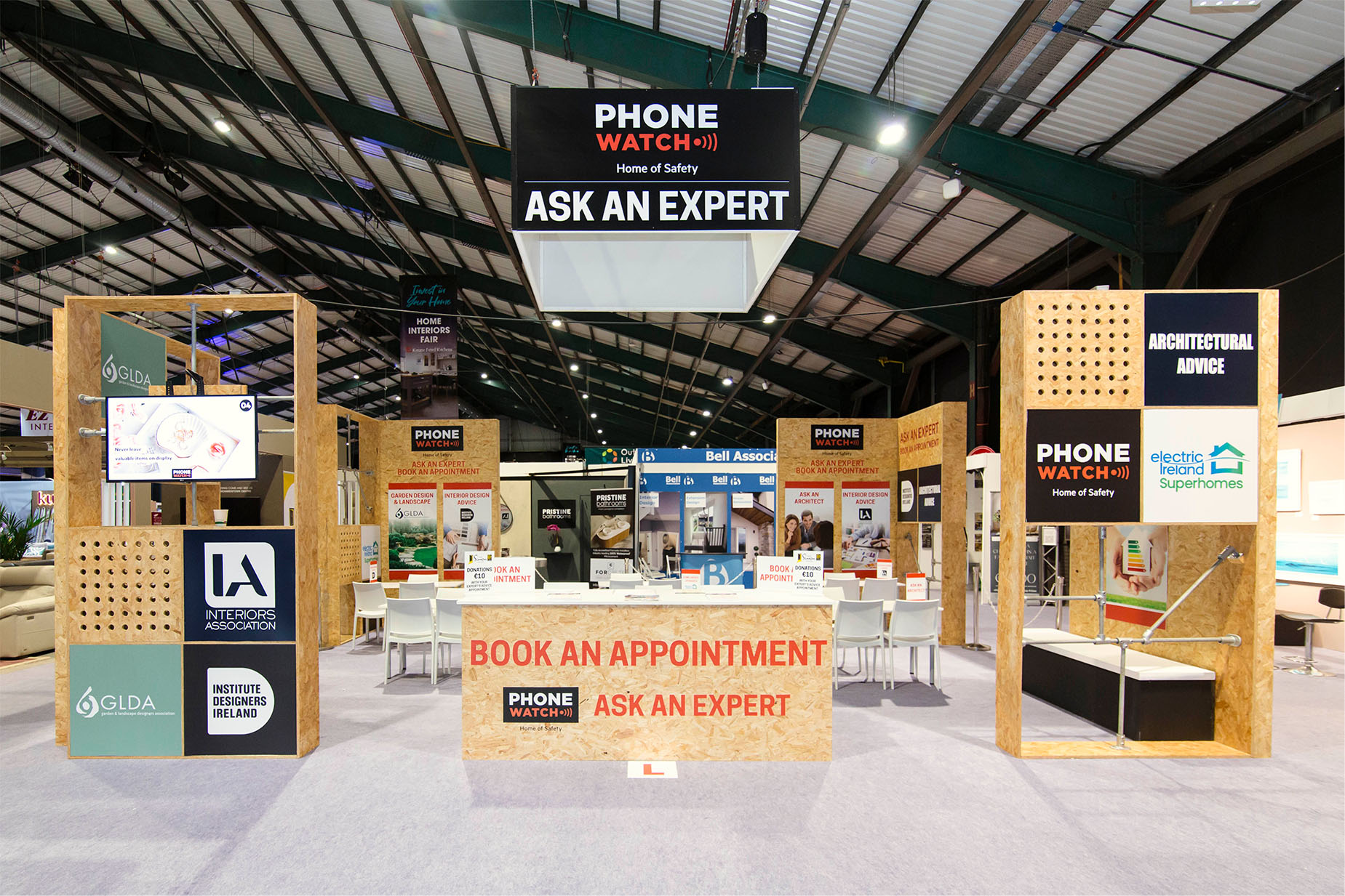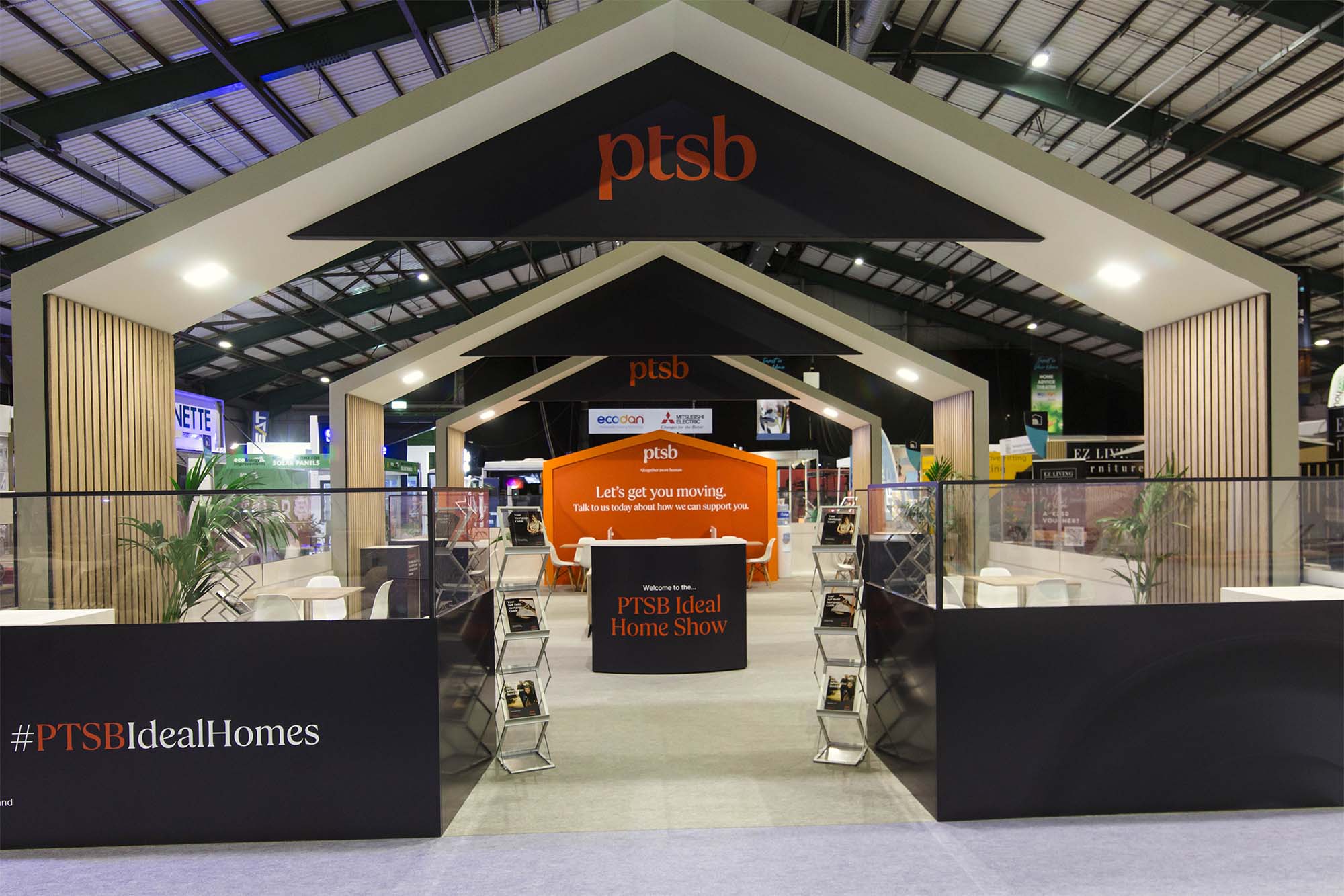 The PTSB Ideal Homes Show made a strong return to the RDS in April 2025. We were proud to act as the event’s main contractor, providing the full shell scheme, building all feature areas, and installing the entire electrical infrastructure. We also designed, manufactured, and installed a variety of custom builds for our clients.